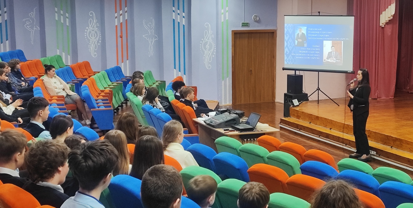26 февраля 2026 года в рамках реализации проекта «ШАГ» в актовом зале государственного учреждения образования «Средняя школа №42 г. Могилева» для обучающихся 8-ых классов состоялась встреча с первым секретарём Октябрьского РК ОО «БРСМ» Козловой Валерией Дмитриевной.