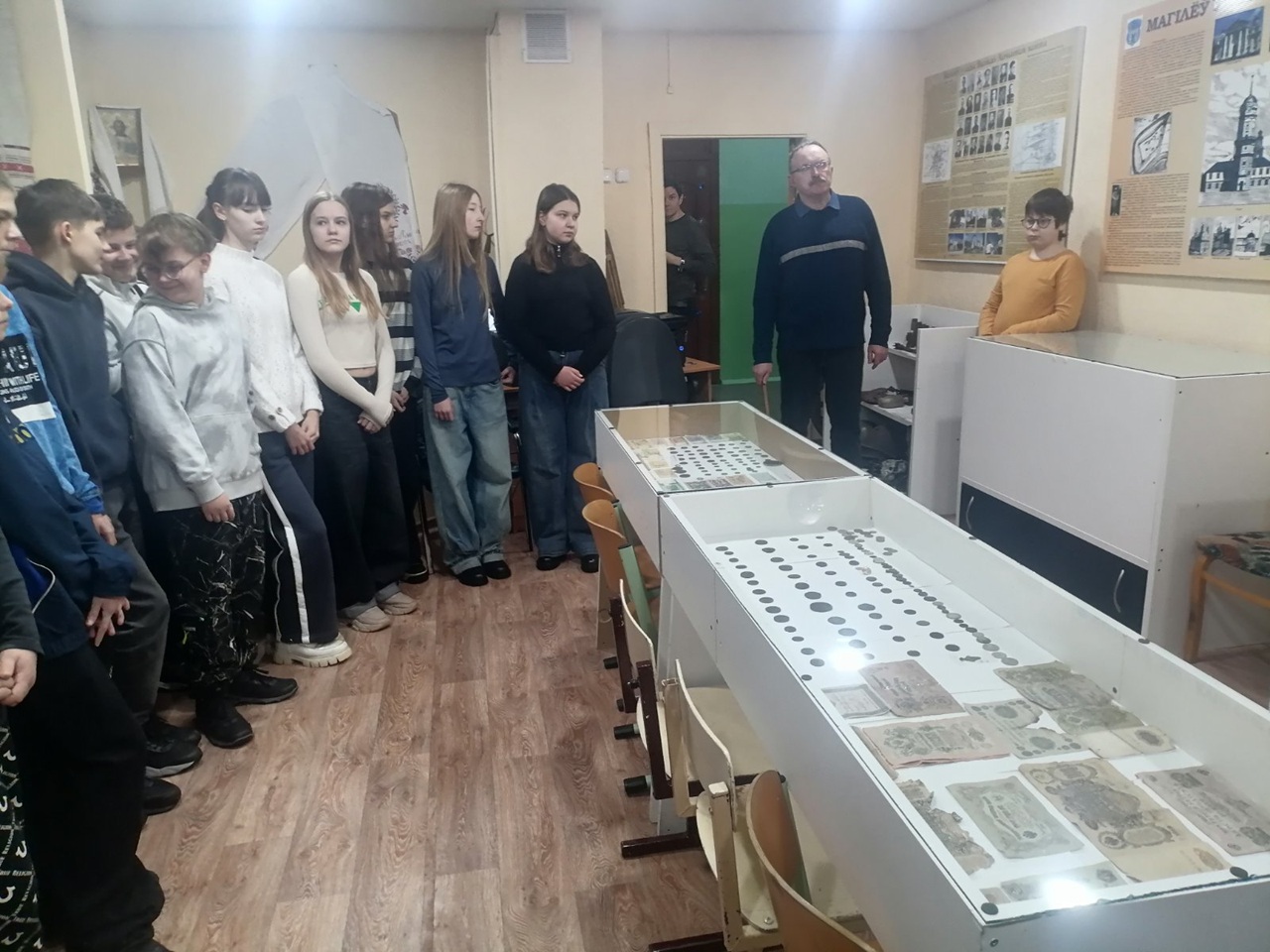 Экскурсии провели руководитель музея Михаил Владимирович Шимукенус и учащийся 6 "Б" класса Никита Шарубин. Экскурсантам продемонстрировали экспозицию музея, включающую в себя темы истории Могилёвской губернии, Могилева в годы Великой Отечественной войны, этнографический уголок и многое другое.