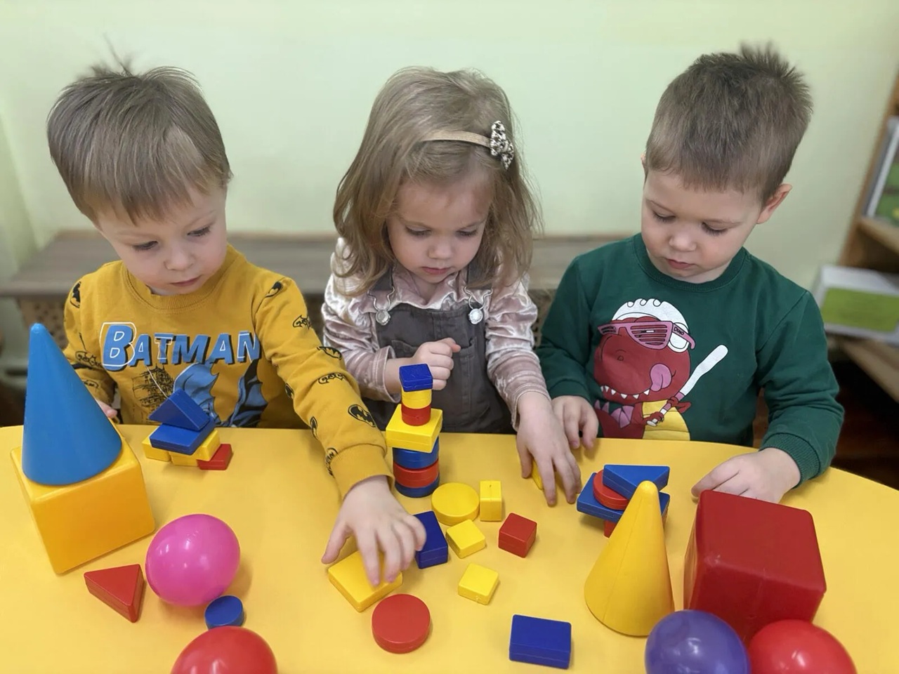 С целью формирования представлений об эталонах форм (круг, квадрат, треугольник); различных плоских и объёмных геометрических фигурах, 9 февраля 2026 года в первой младшей группе «А» прошло занятие по образовательной области «Элементарные математические представления» на тему: «Цвет, форма и величина».