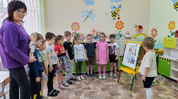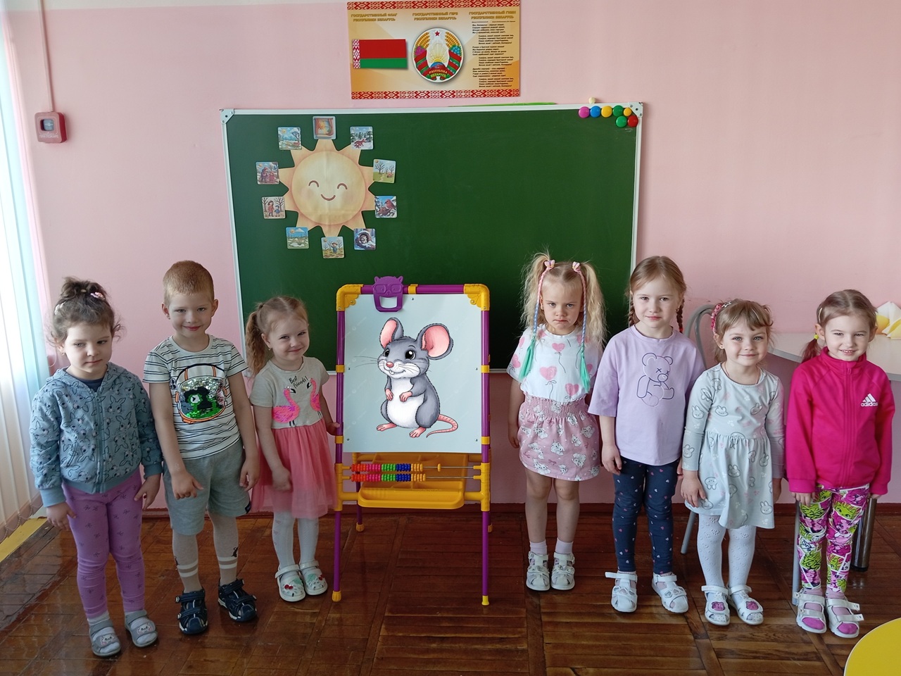 На занятку дзеці з дапамогай выхавацеля адказвалі на пытанне і апісвалі цацку "Мышку", гулялі ў гульню "Кот i мышкі". На працягу ўсяго занятку дзеці былі актыўнымі ўдзельніцамі.