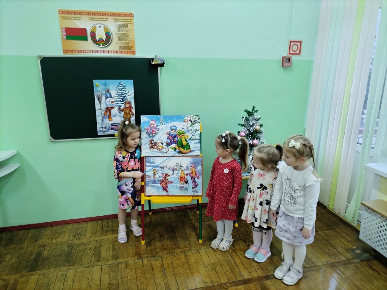 На працягу ўсяго дня выхаванцы размаўлялі на беларускай мове, завучвалі верш Максіма Багдановіча “Зімой”, расказвалі верш Ніны Галіноўскай “Будзь уважлівы, пешаход!”. Таксама гулялі ў дыдыктычную гульню “Апрані ляльку ў нацыянальную вопратку”; народныя гульні: “Пасадка бульбы”, “Малако”, “Назаві і раскажы”, “Міхасік”. У ходзе гульняў выхаванцы размаўлялі на беларускай мове, адказвалі на пытанні выхавальніка.