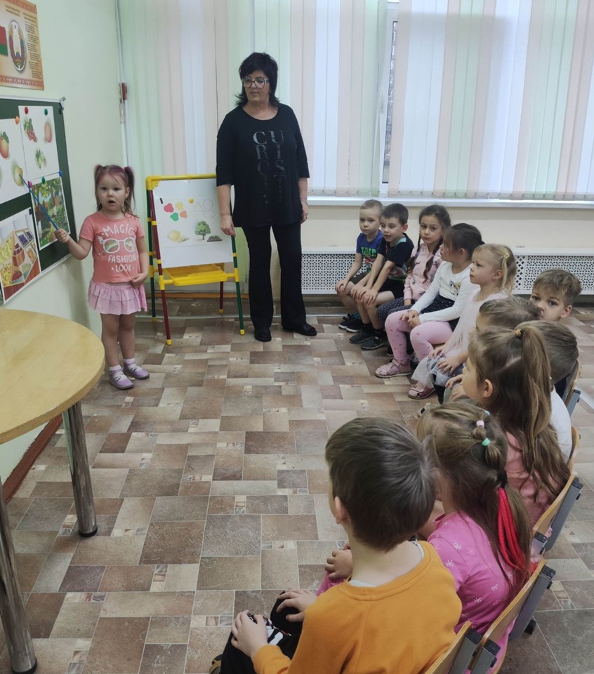 З мэтай развiцця маўлення i культурна-маўленчых зносiн 13 лicтапала 2025 года ў старэйшай "В" групе прайшоў занятак па АГ "Развiццё маўлення i культурна-маўленчых зносiн" "Ураджай у садзе".