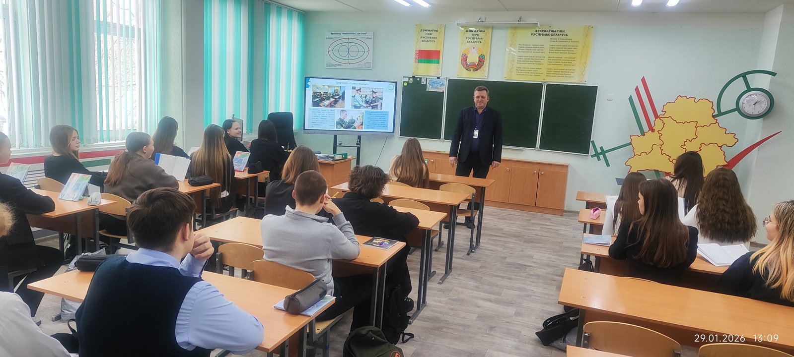 29 января в ГУО «Средняя школа №42 г. Могилева» в рамках информационно-образовательного проекта «ШАГ» для обучающихся 9-10-ых классов состоялся открытый диалог на тему: «Быть достойным гражданином Республики Беларусь – значит быть готовым в любую минуту встать на защиту Родины».
